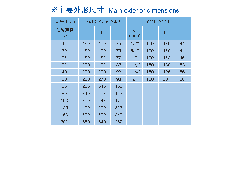 Y110、Y410、Y416, Y425型減壓穩(wěn)壓閥由閥體、閥蓋、壓縮彈簧、閥桿、活塞(膜片)、缸套、閥座及密封墊等零件組成。